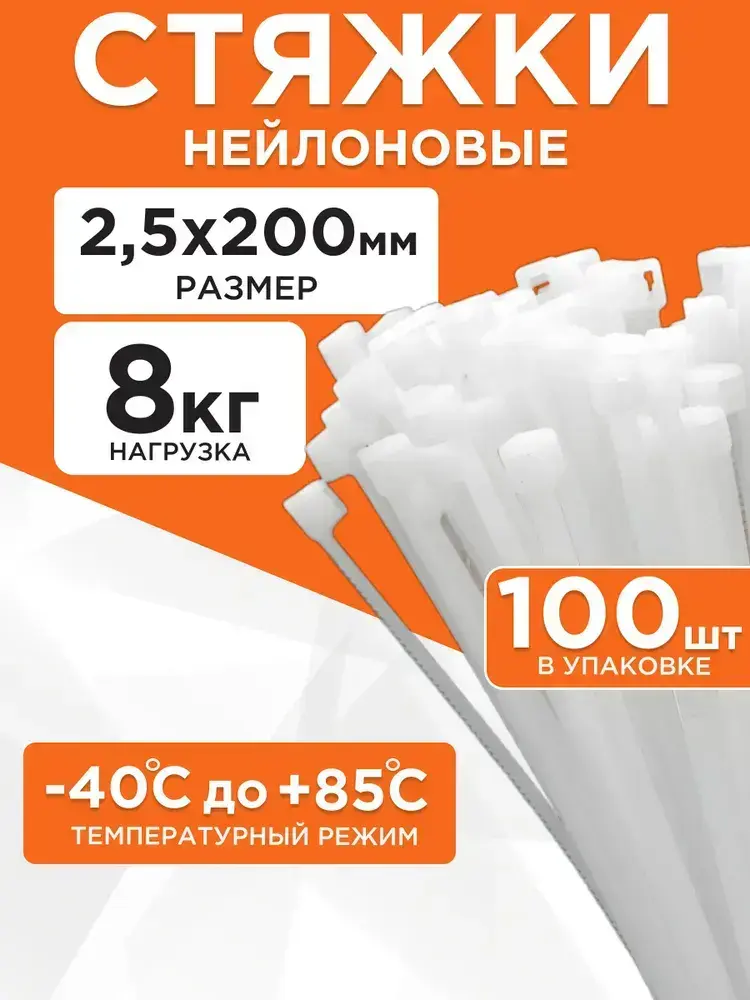 Cablexpert Стяжка 2.5мм x 200мм, 100 шт., Нейлон