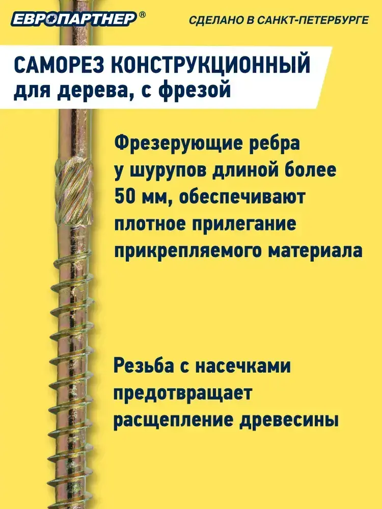 Cаморез конструкционный по дереву 3,5х16мм Torx 15 Европартнер (30шт.)