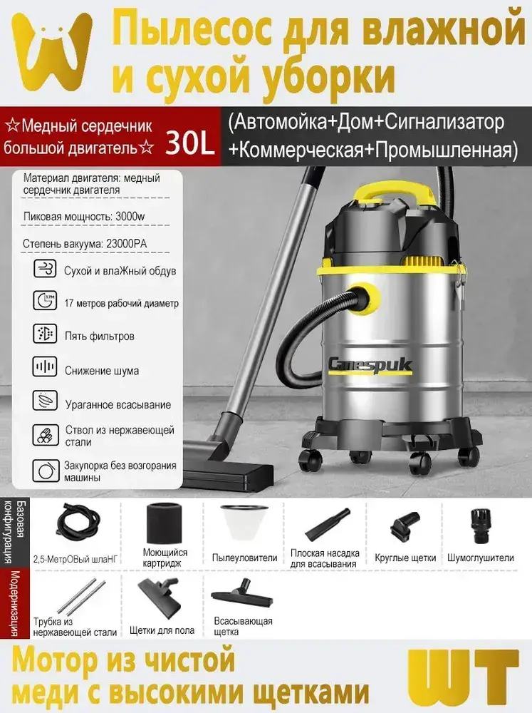 CANESPUK Строительный пылесос 25 л, 3000 Вт