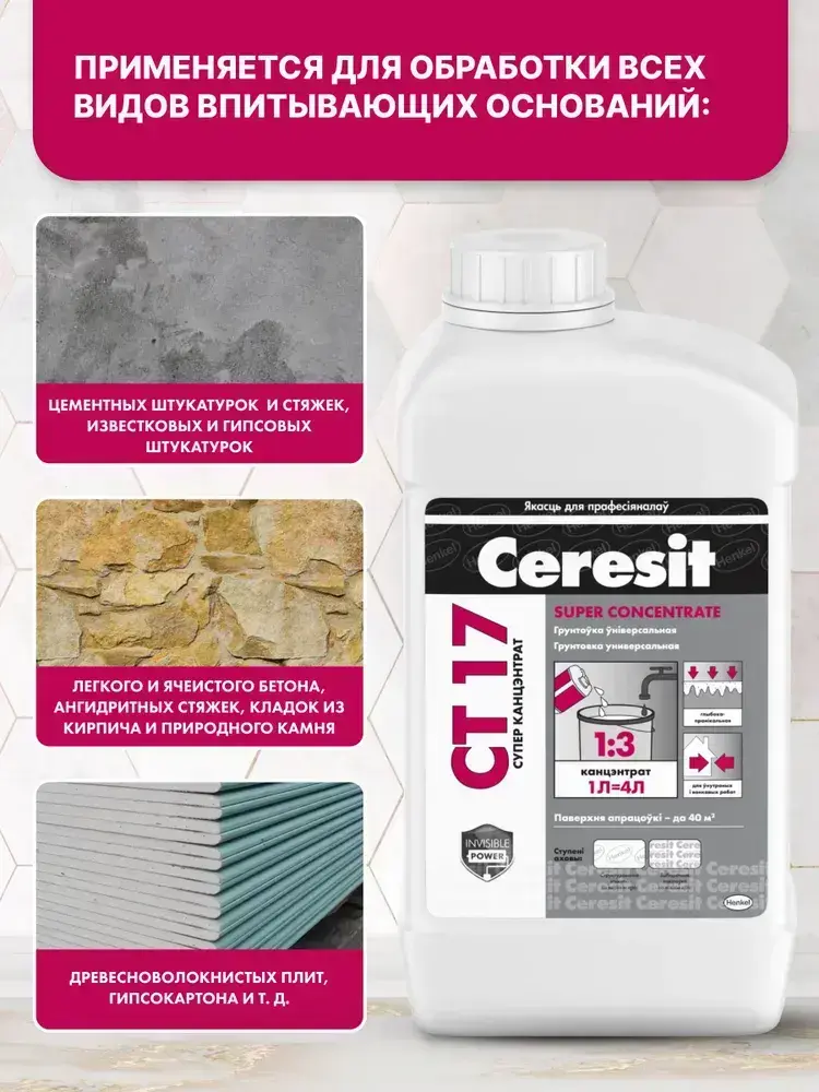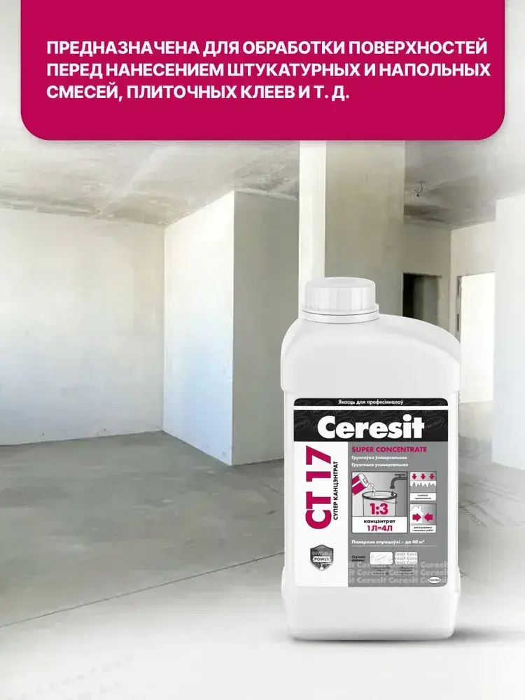 Ceresit CT 17 Супер концентрат (1л), Грунтовка для стен и пола глубокого проникновения Церезит СТ 17