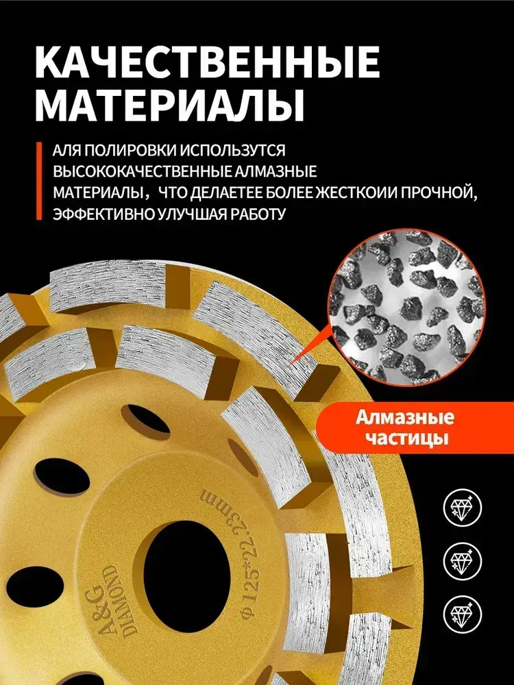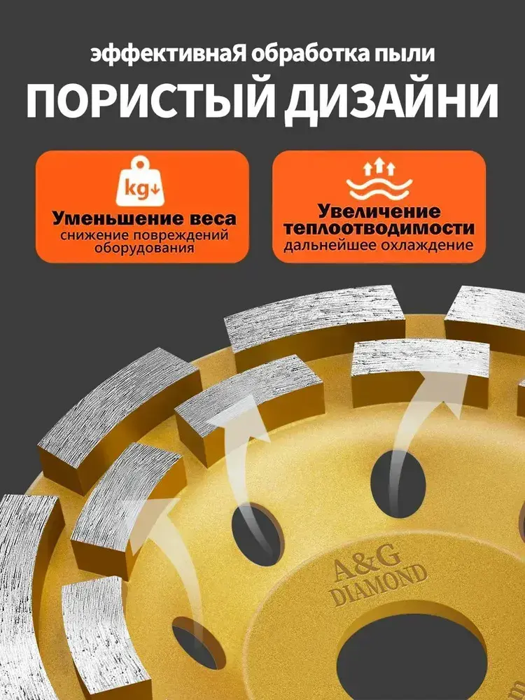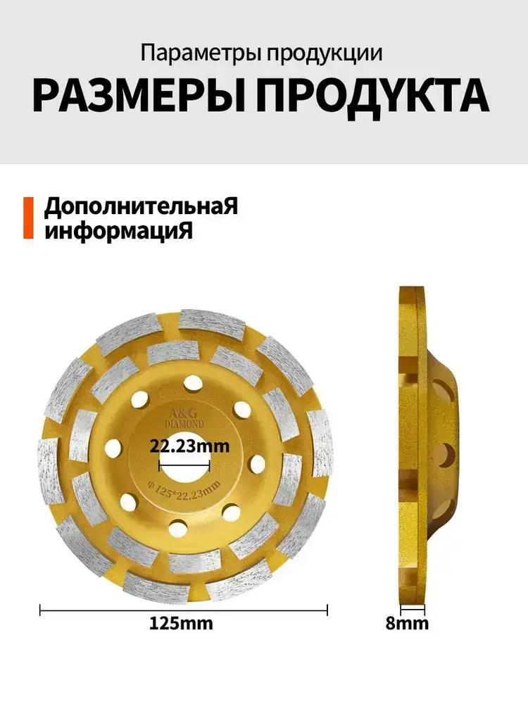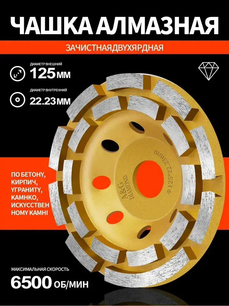 Чашка алмазная зачистная двухрядная , сегмент 125 мм / Шлифовальный круг / Круг зачистной