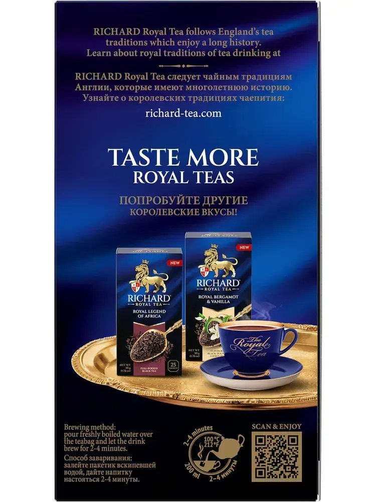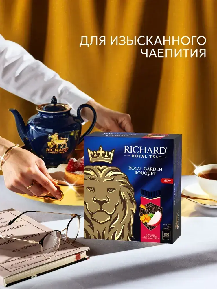Чай в пакетиках Richard Royal с лепестками сафлора, яблоком и мятой, черный, 25 шт