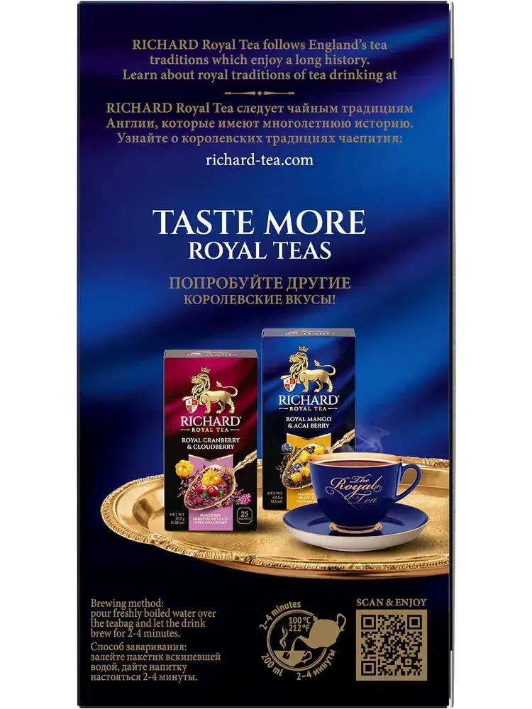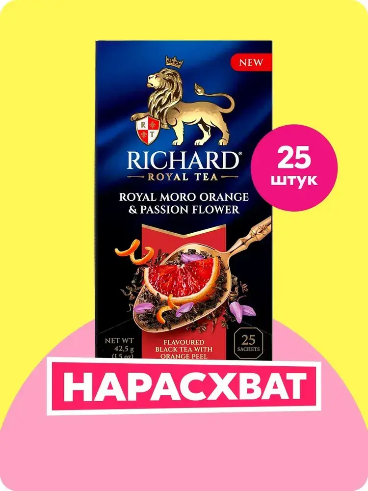 Чай в пакетиках Richard Royal со вкусом апельсина Моро и нежным ароматом пассифлоры, черный, 25 шт