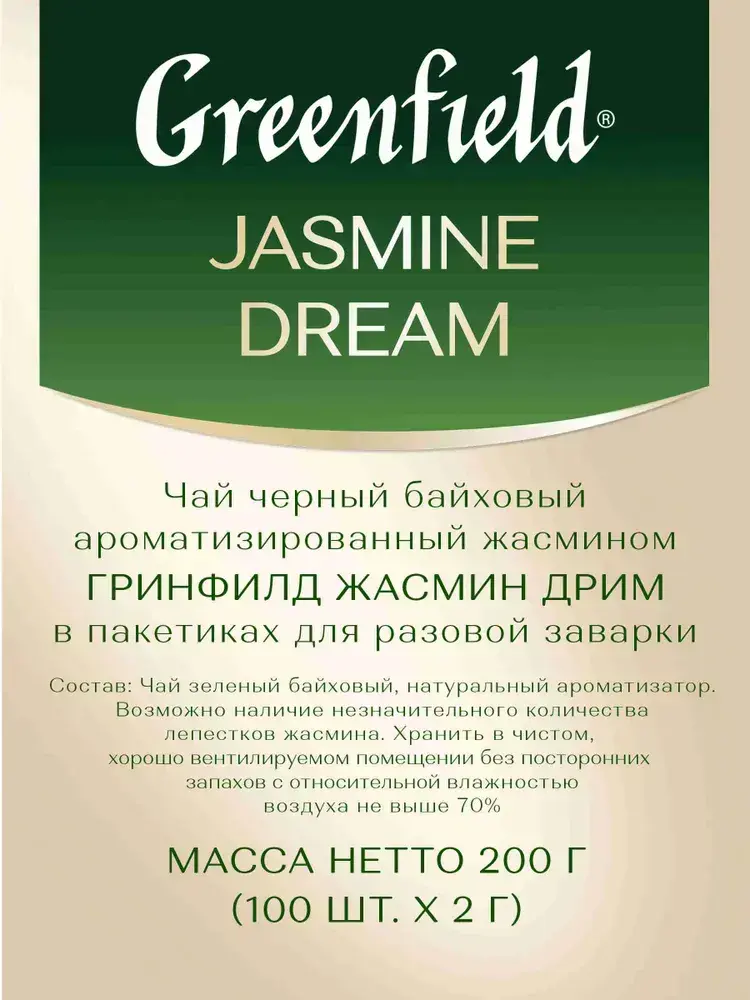 Чай в пакетиках зелёный Greenfield Jasmine Dream, 100 шт