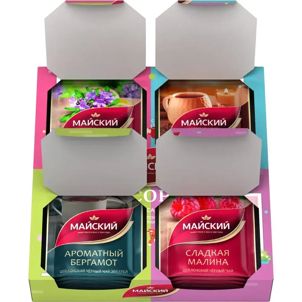 Чайное ассорти Майский Окна: Сердце Цейлона, Сладкая малина, Душистый чабрец, Ароматный бергамот, 20 шт