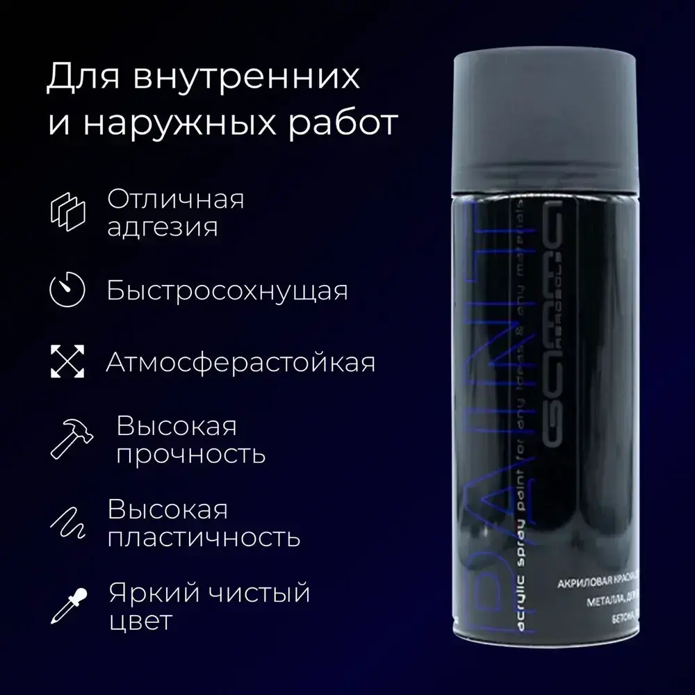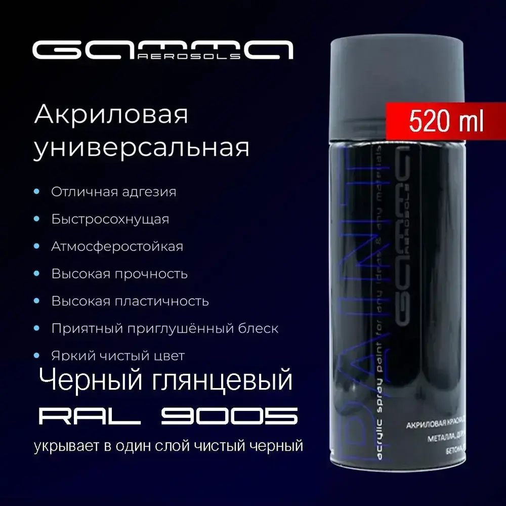 Черная глянцевая RAL 9005 520мл. акриловая краска аэрозольный баллончик Gamma Paint