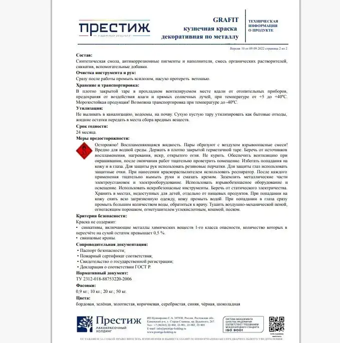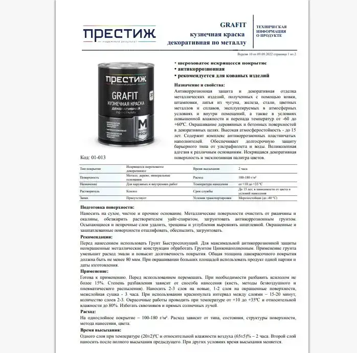 ЧЕРНАЯ Краска кузнечная 0,9 кг GRAFIT. Престиж Мастер