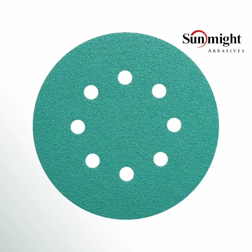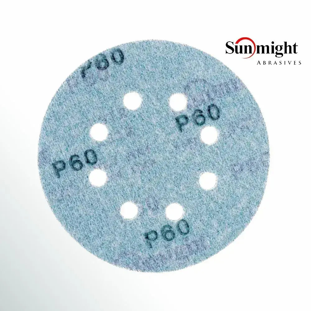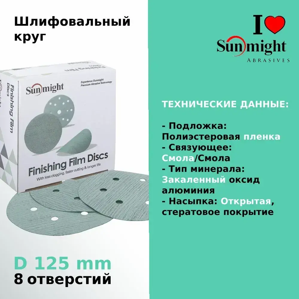 D-125; P120; 100 шт. FILM, 8 отверстий. Шлифовальные круги на липучке SUNMIGHT: 125 мм; P120; 100 шт.