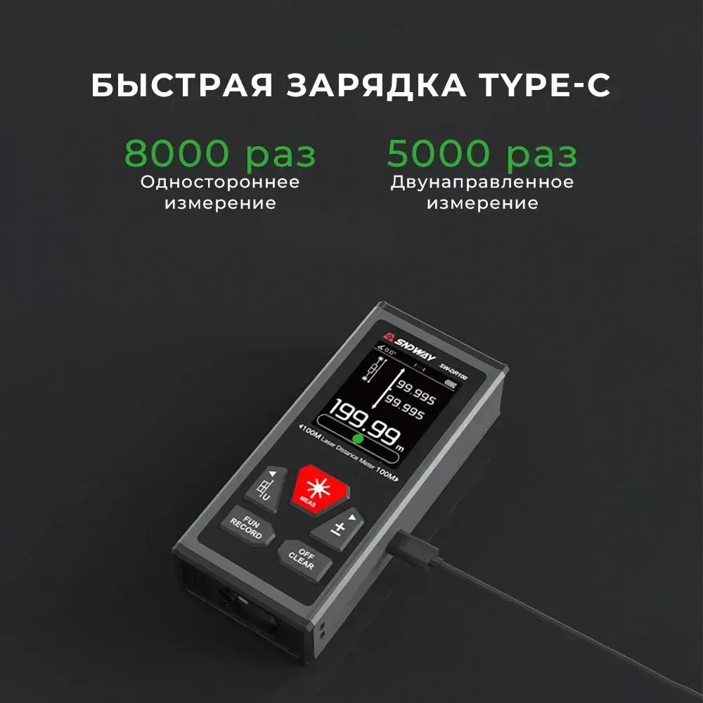Дальномер лазерный SNDWAY SW-DR 60, 120 метров, двусторонний, питание от встроенного аккумулятора