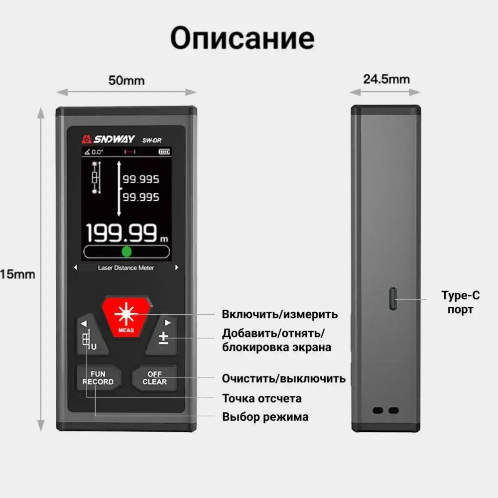 Дальномер лазерный SNDWAY SW-DR100, 200 метров, двусторонний, питание от встроенного аккумулятора