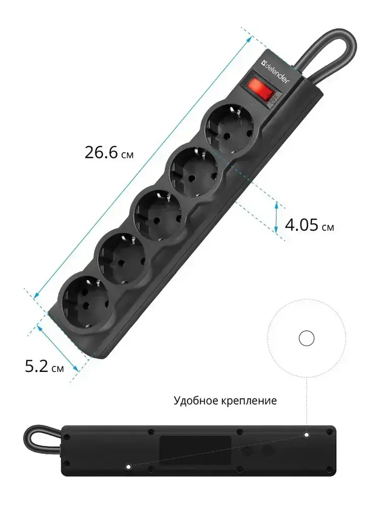 DEFENDER Сетевой фильтр 1.8 метра с выключателем, 5 розеток с заземлением, черный