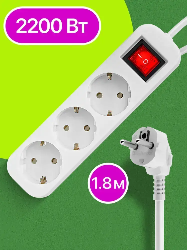 Defender Удлинитель сетевой 1,8 м с выключателем на 3 розетки с заземлением