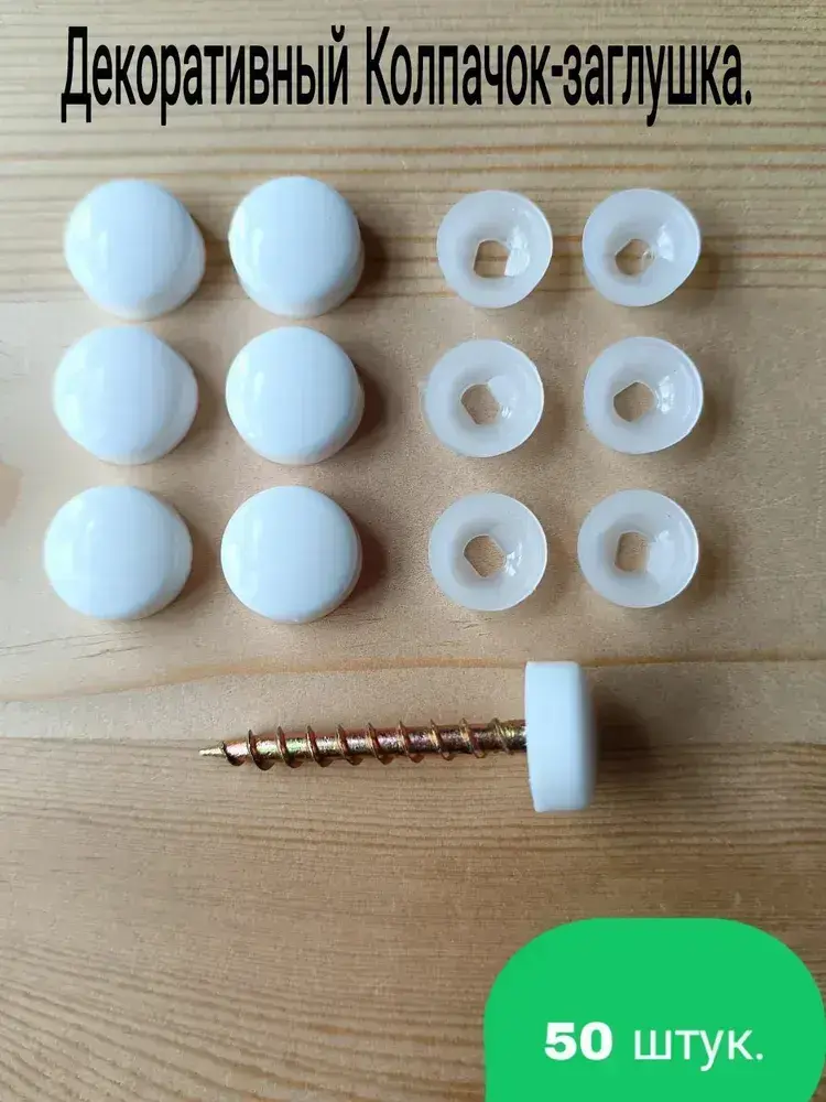 Декоративный колпачок заглушка для самореза белый 50 штук