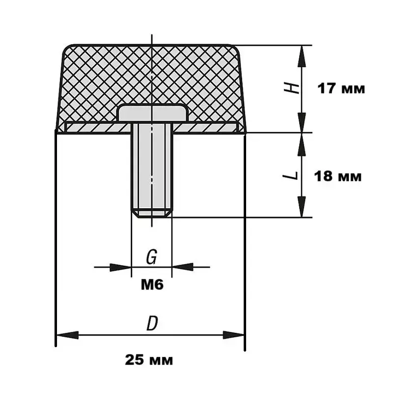 Демпфер конический с наружной резьбой М6, тип MS. DR332517M618