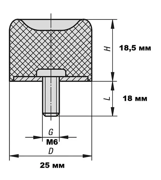 Демпфер с присоской и наружной резьбой М6, тип DS. DR3525185M618