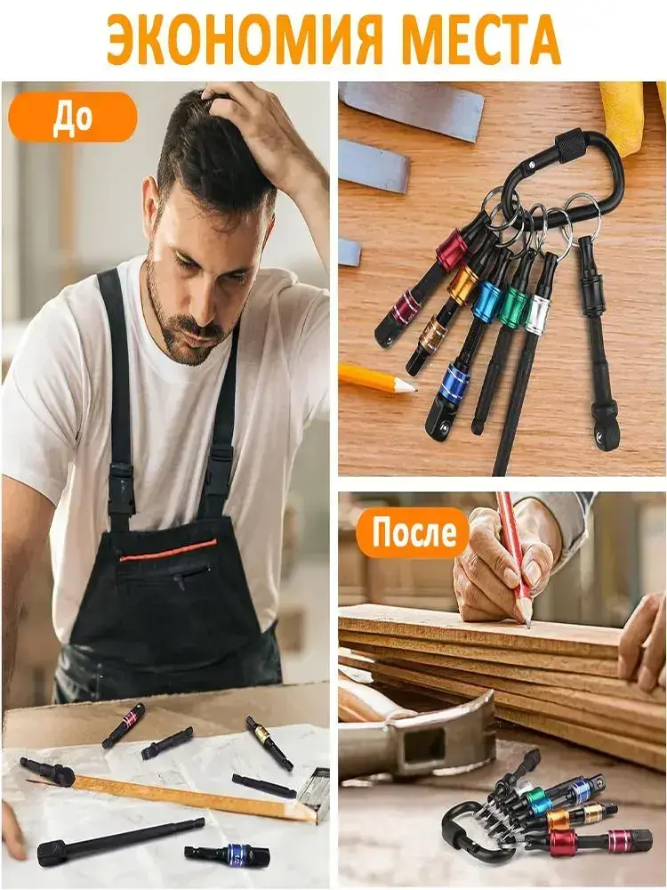 Держатель бит шестигранных на 1/4" (6шт) с быстросъемным карабином