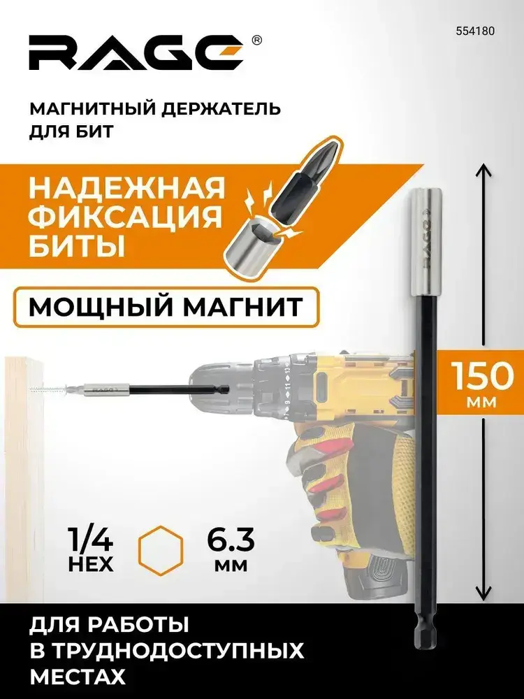 Держатель для бит магнитный удлинитель для бит 150 мм RAGE by VIRA