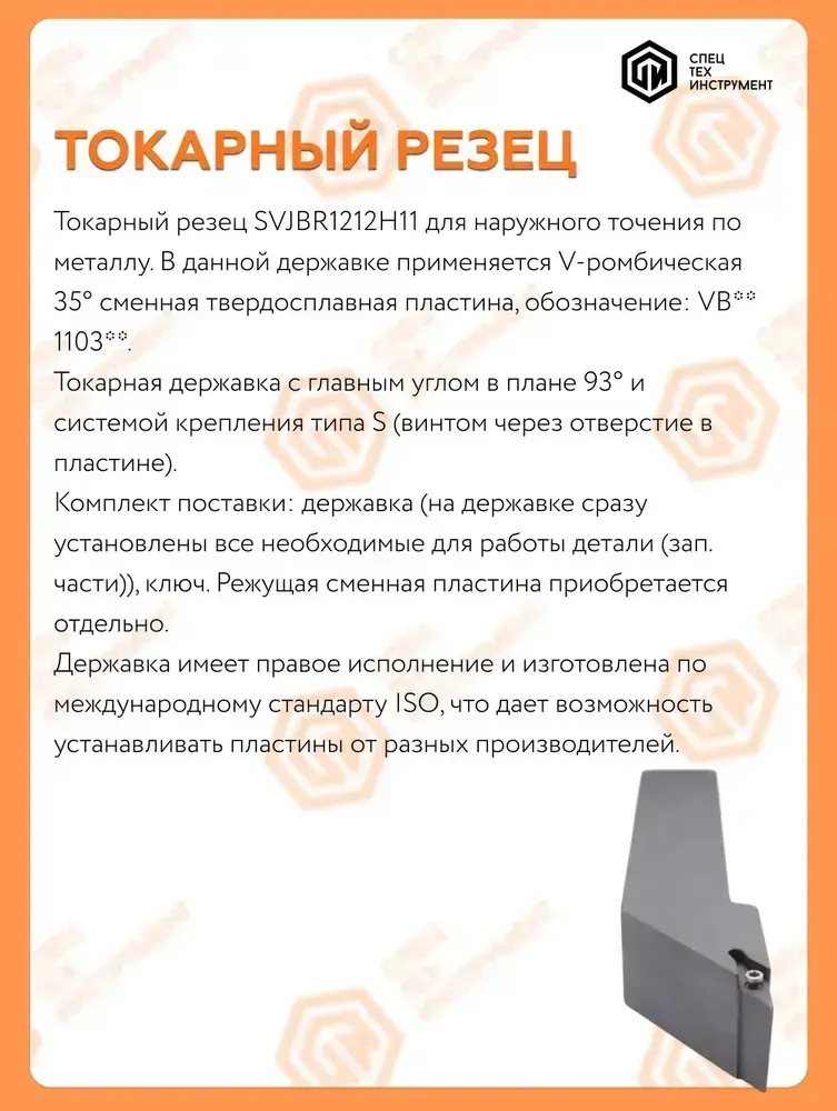 Державка правая SVJBR1212H11 СпецТехИнструмент
