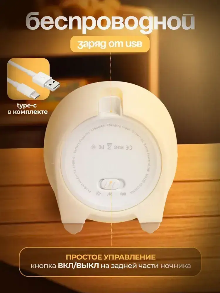 Детский ночник с таймером Капибара силиконовый, беспроводной светильник для малышей