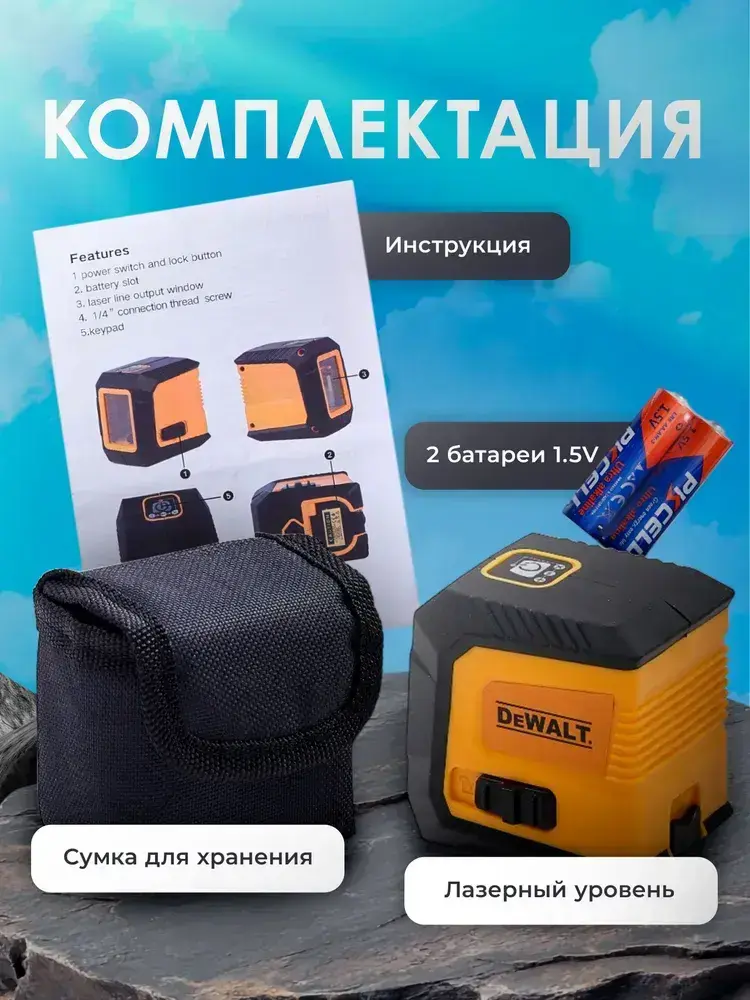 DeWALT Уровень строительный лазерный 2 линии, 2 класс, Профессиональный лазерный уровень самовыравнивающийся строительный, питание от батареек