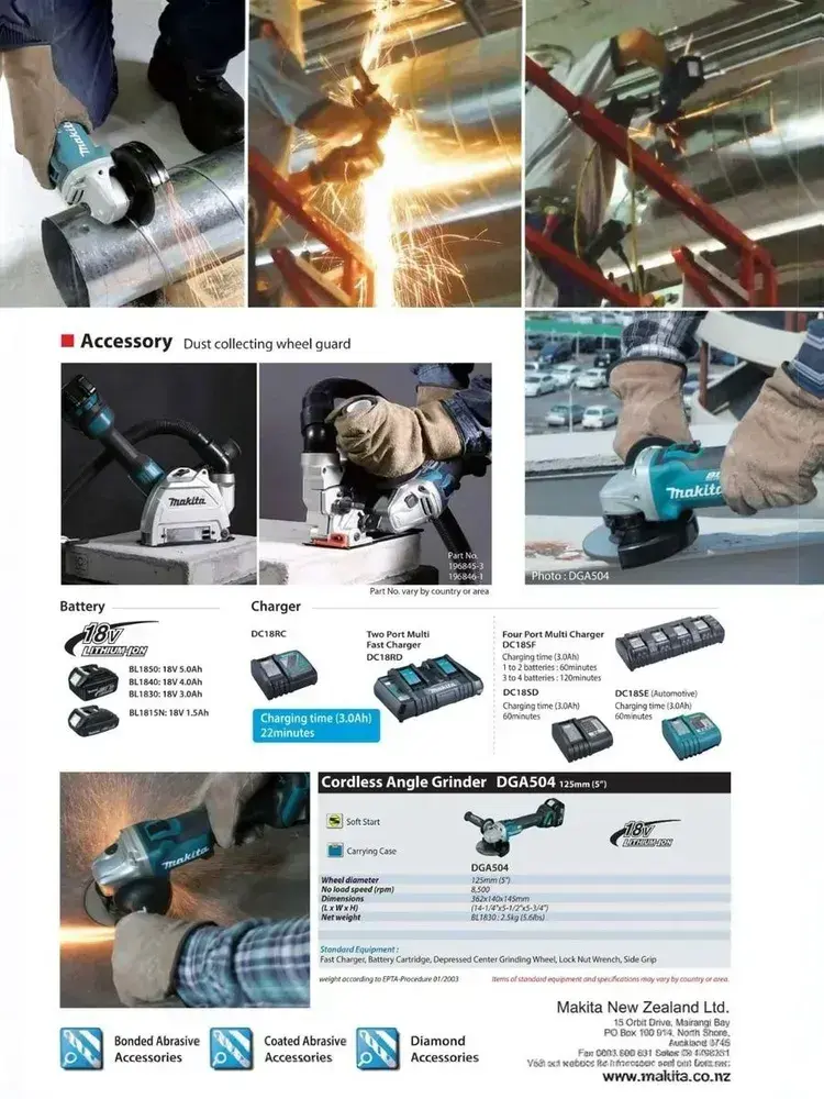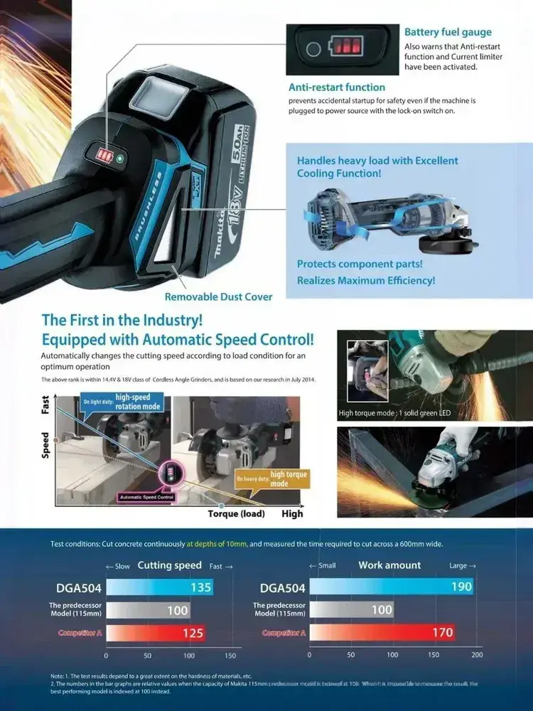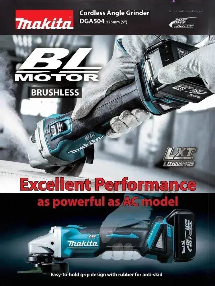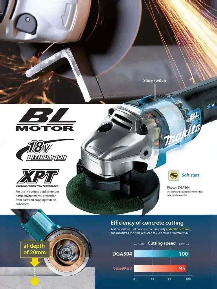 DGA504 18 В LXT Бесщеточная аккумуляторная 125-миллиметровая угловая шлифовальная машина с ползунковым переключателем