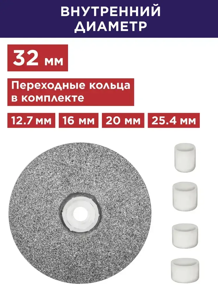 Диск абразивный для точила ПУЛЬСАР 125 х 32 х 16 мм F 36 серый (SiC) + кольца переходные