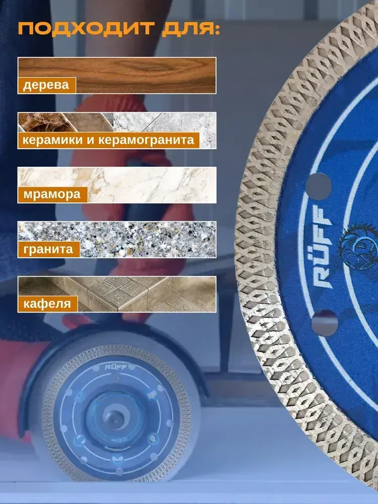 Диск алмазный 125 по керамограниту Ruff, отрезной 125 x 1,2 x 22,23 тонкий, по керамике, по бетону, по граниту, по мрамору