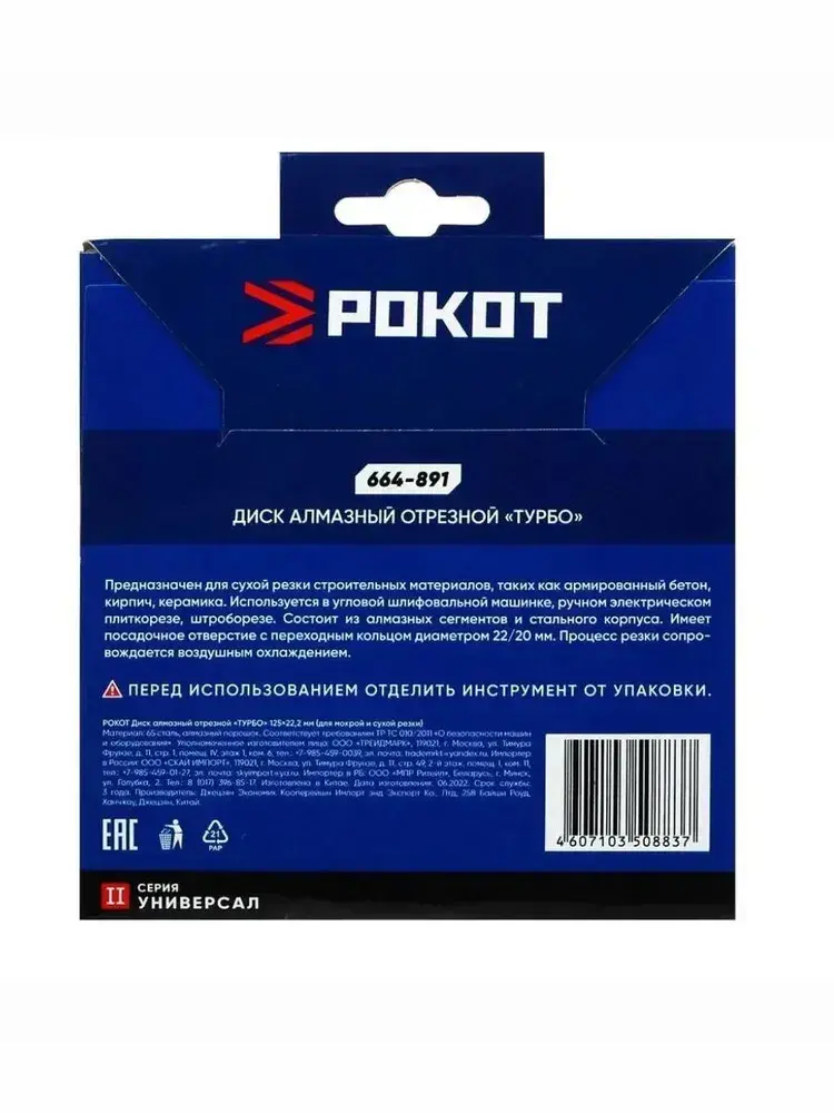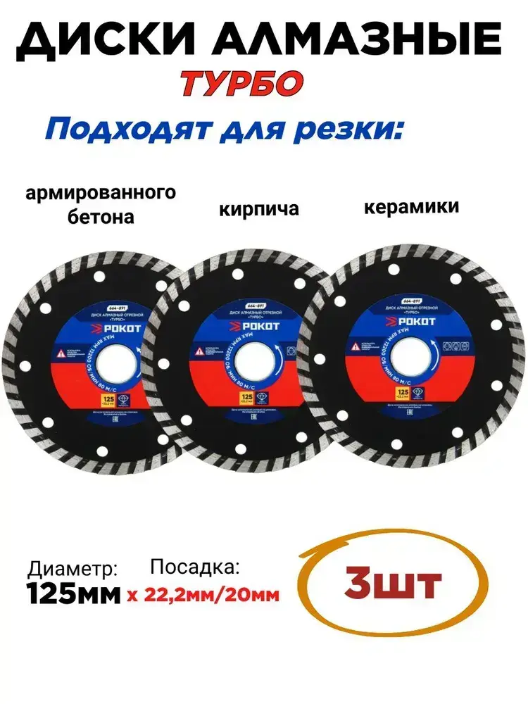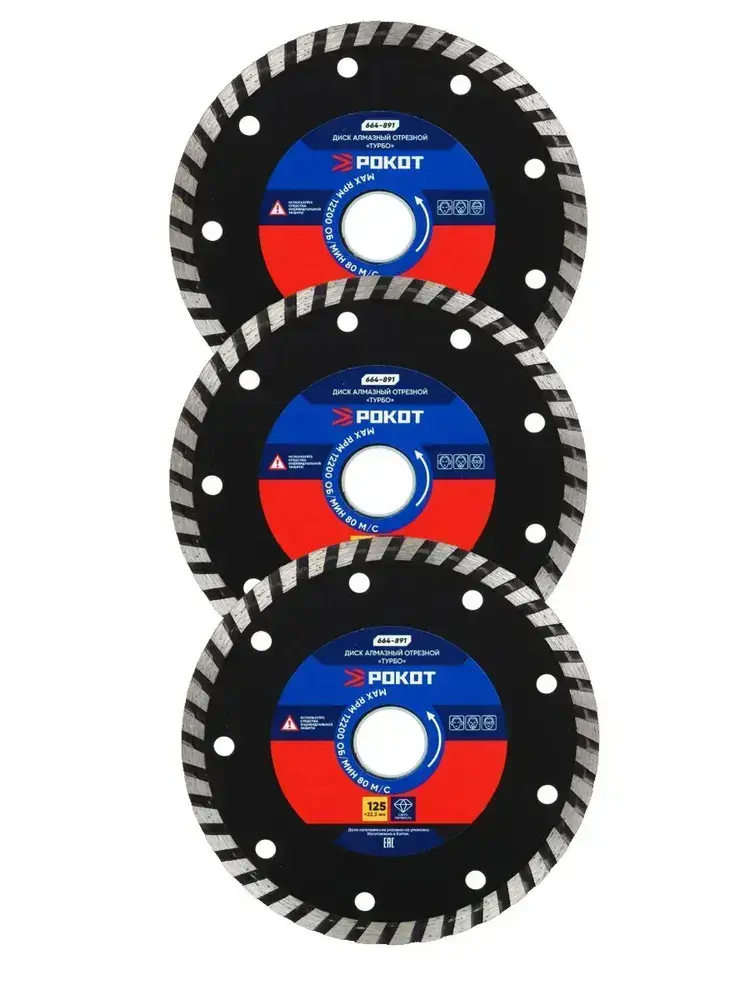 Диск алмазный 125мм ТУРБО (универсальный)-3шт. Круг для резки армированного бетона, камня, кирпича, керамики