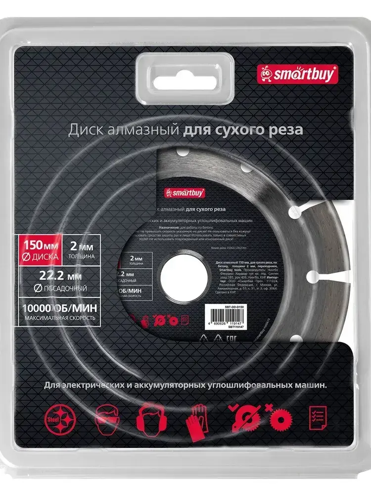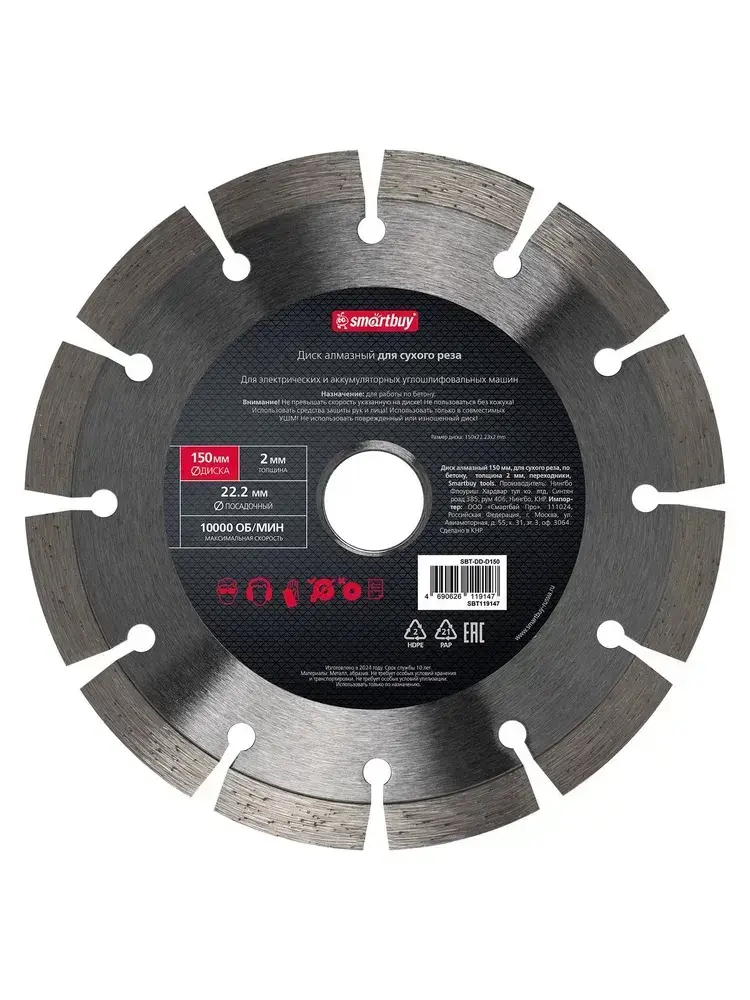 Диск алмазный 150 мм, для сухого реза, по бетону, толщина 2мм