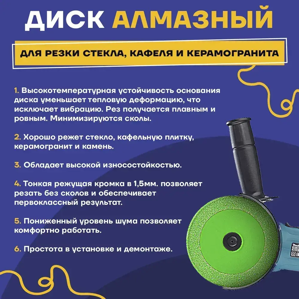 Диск алмазный для болгарки, 100мм. 20мм. 15мм. кромка, универсальный, для стекла, керамогранита, гранита, керамической плитки, камня.