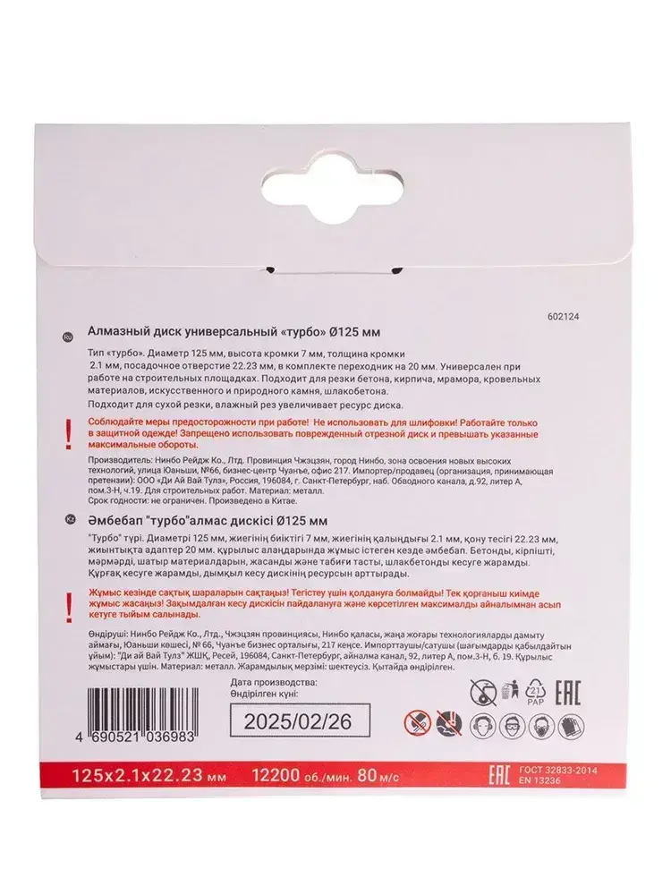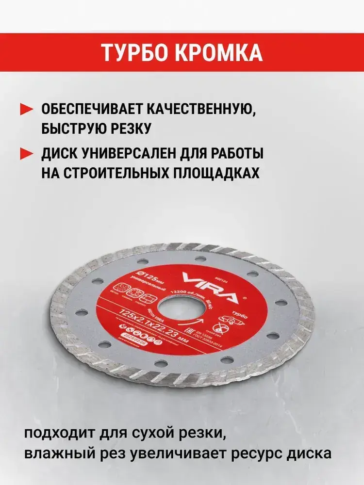 Диск алмазный универсальный по бетону 125 мм турбо VIRA