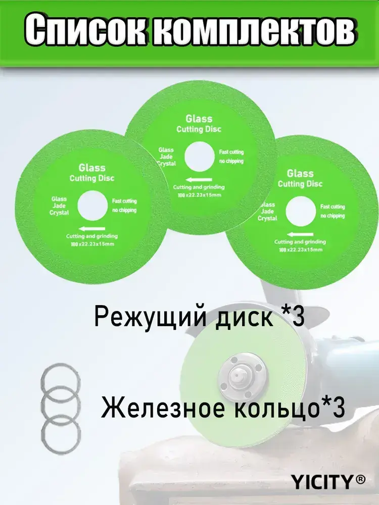 Диск для резки стекла, керамической плитки, керамогранита 100*22.23*15mm/3 шт