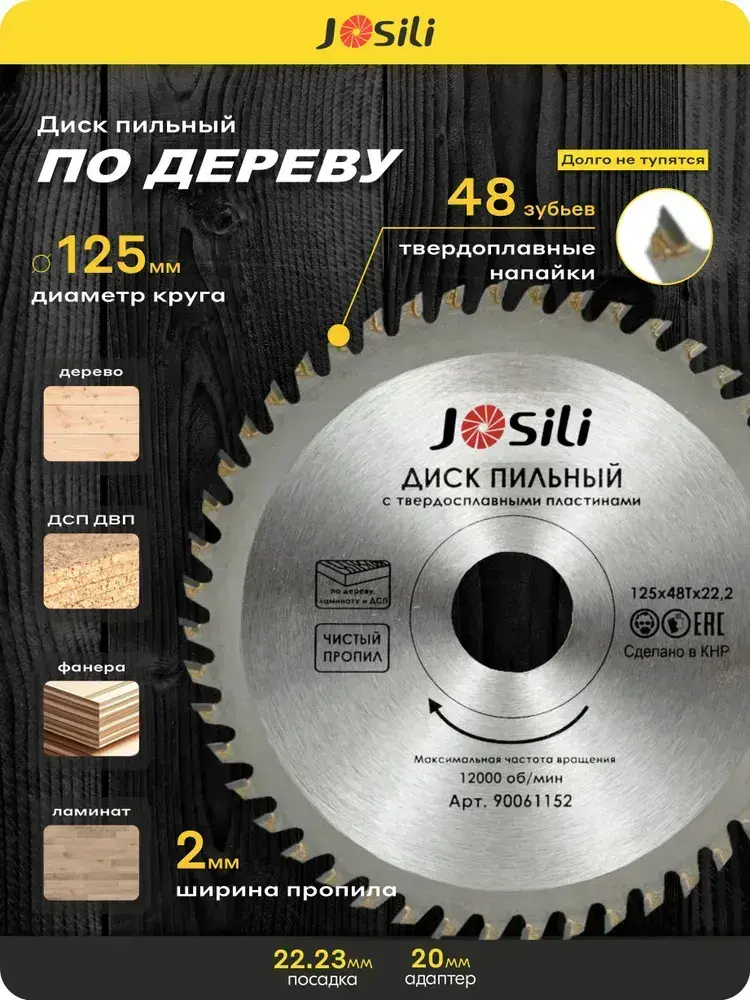 Диск пильный 125х48Тх22,2мм/20мм JOSILI