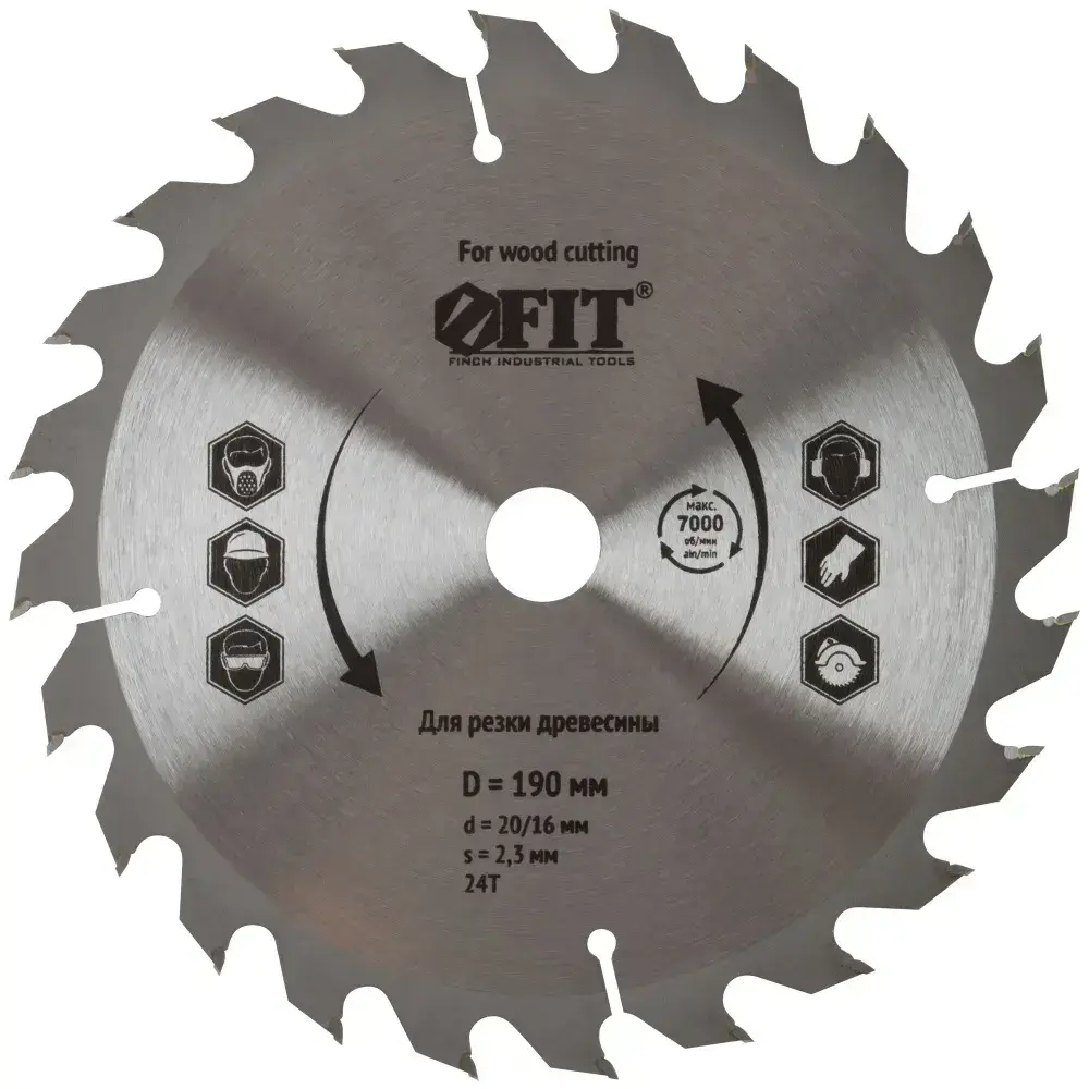 Диск пильный для циркулярных пил по дереву 190 х 20/16 х 24T