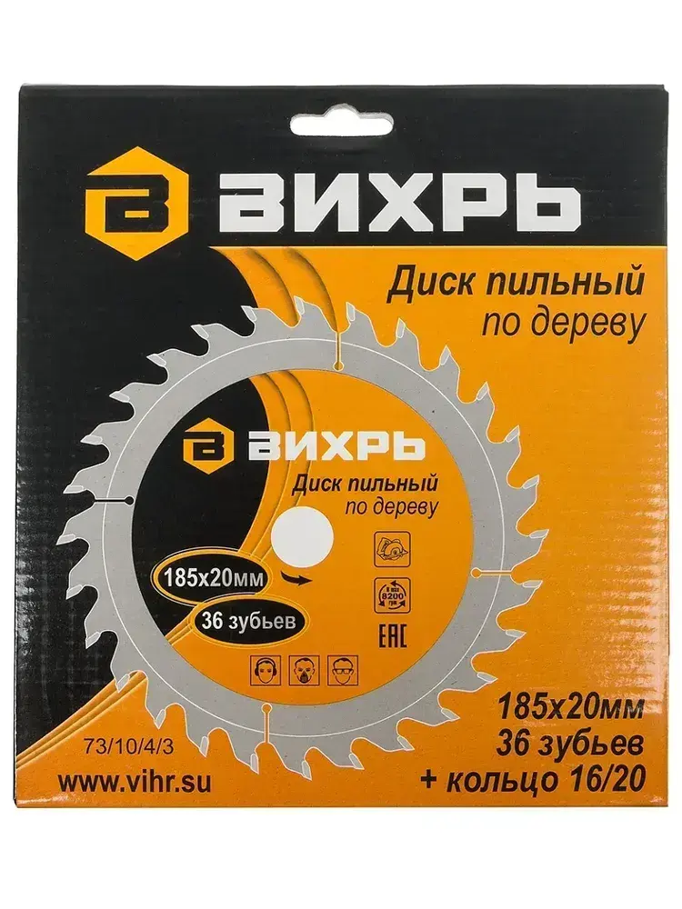 Диск пильный по дереву 185 х 20 мм 36 зубьев Вихрь 36Т,
