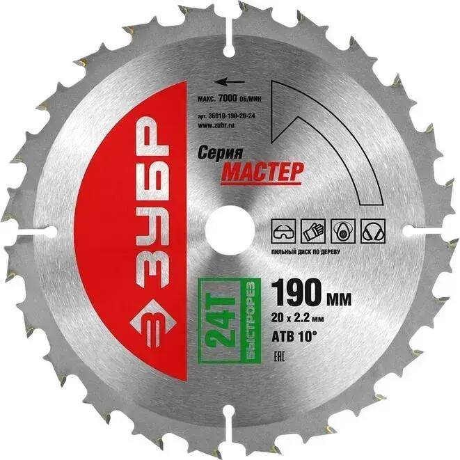 Диск пильный по дереву "Быстрый рез" ЗУБР 190 x 20 мм, 24T