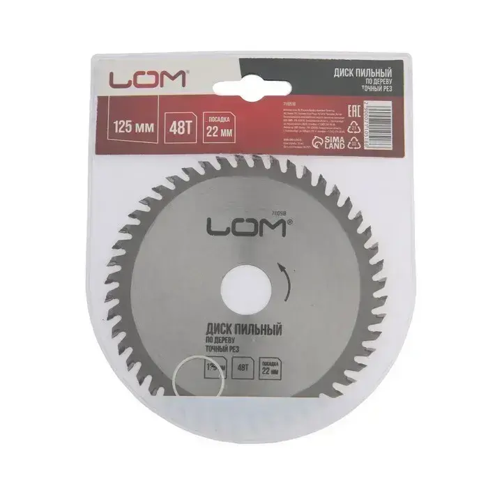 Диск пильный по дереву ЛОМ, точный рез, 125 х 22 мм, 48 зубьев