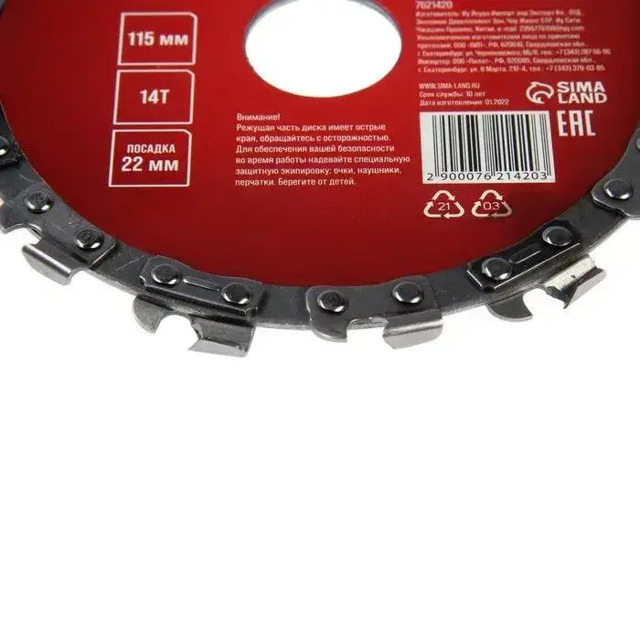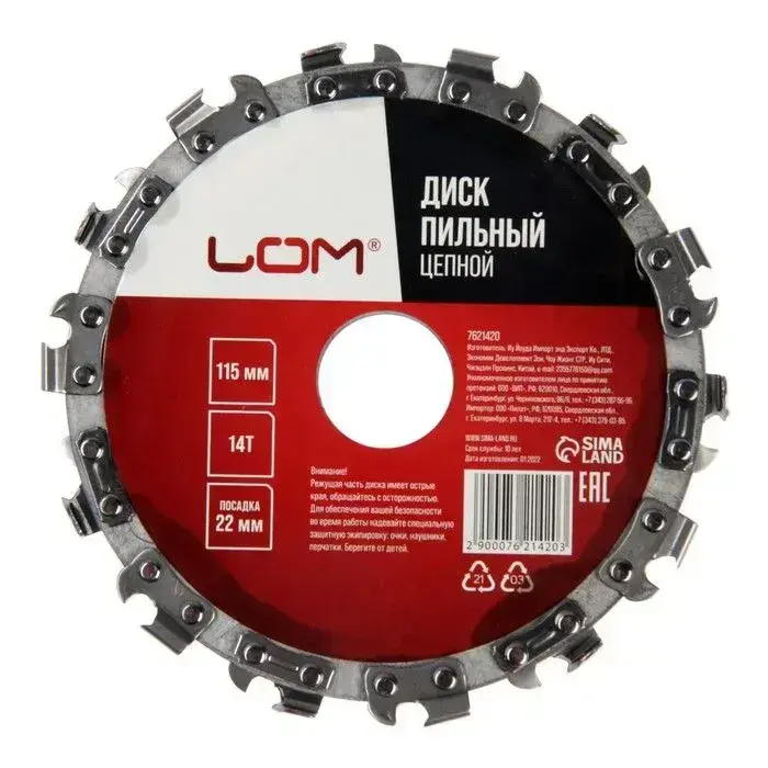 Диск пильный цепной для УШМ ЛОМ, 14Т, 115 х 22 мм