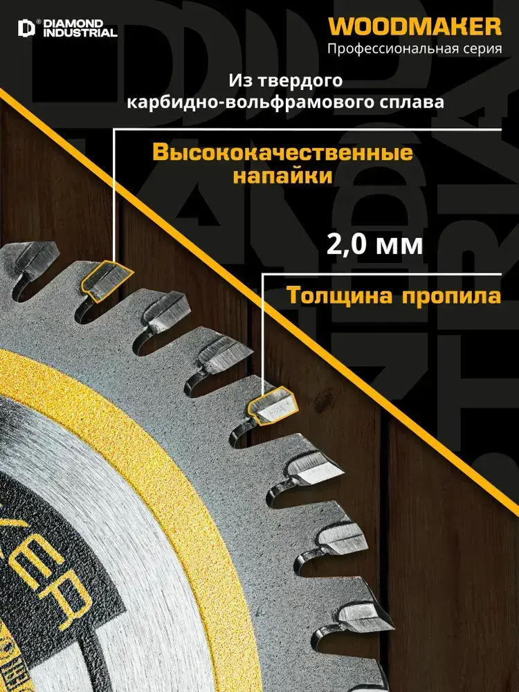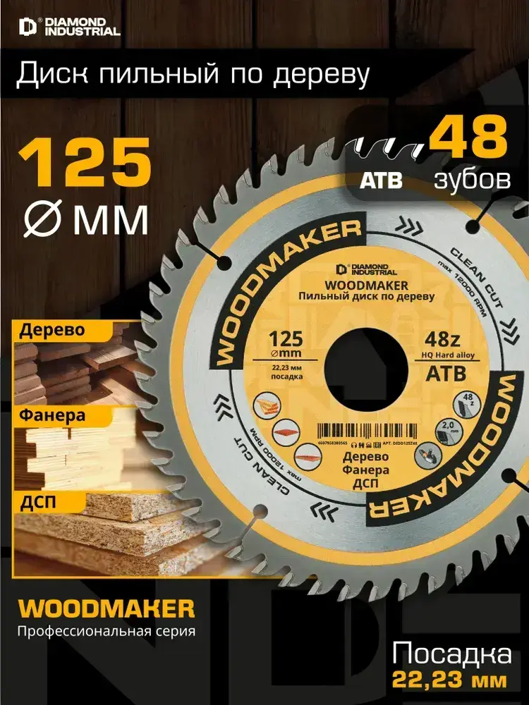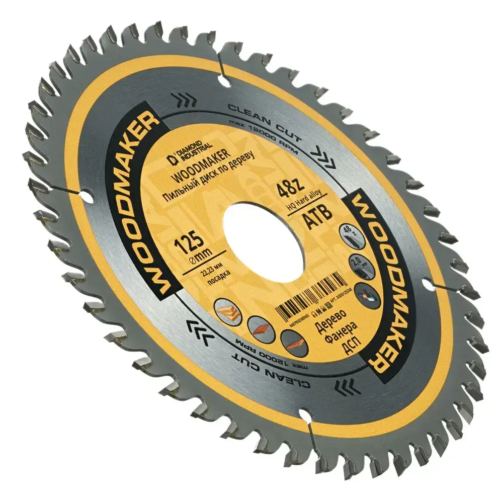Диск по дереву для ушм 125 мм 48 зубов ATB пильный, посадка 22,23, чистый рез WoodMaker Diamond Industrial