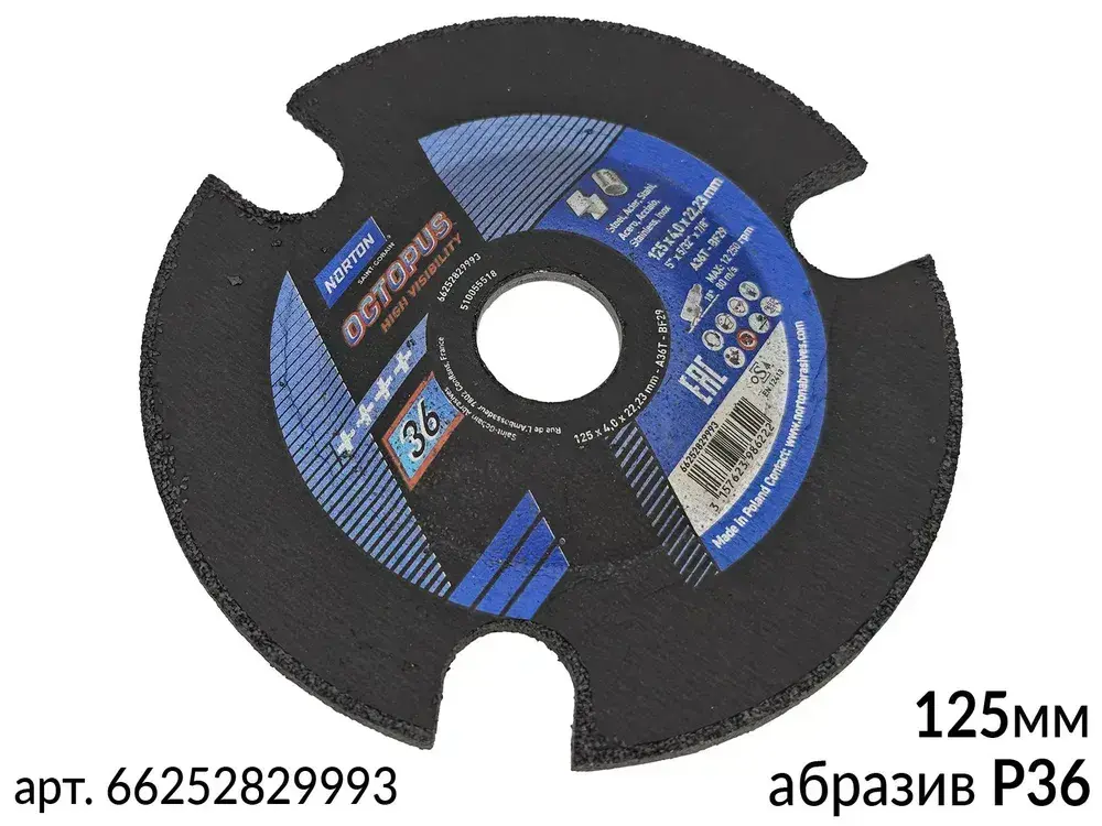диск зачистной для сварных швов P 36 125мм по металлу OCTOPUS NORTON - 3 шт