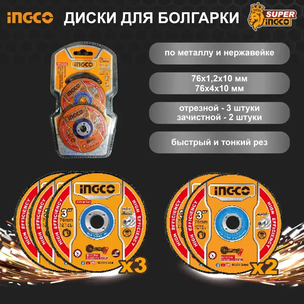 Диски 76х10 мм. по металлу абразивные 5 штук INGCO MCD303768 (С НДС)