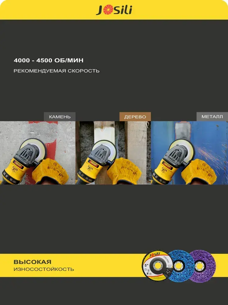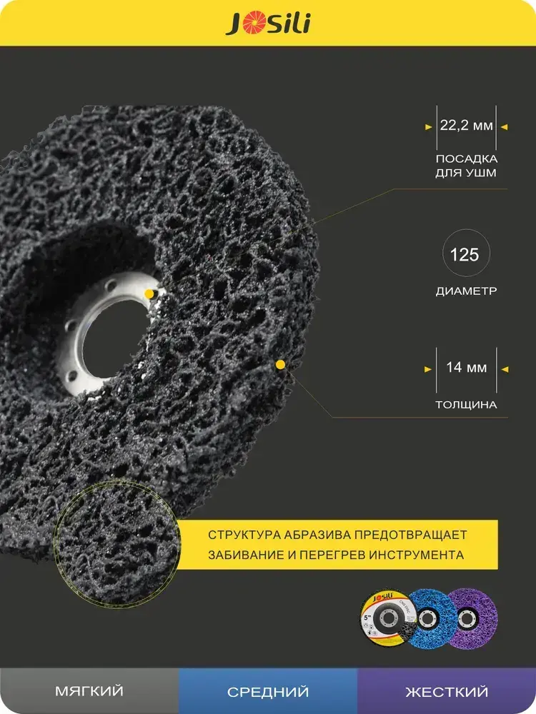 Диски коралловые шлифовальные Josili набор 3шт., 125мм, зачистные круги для УШМ/болгарки