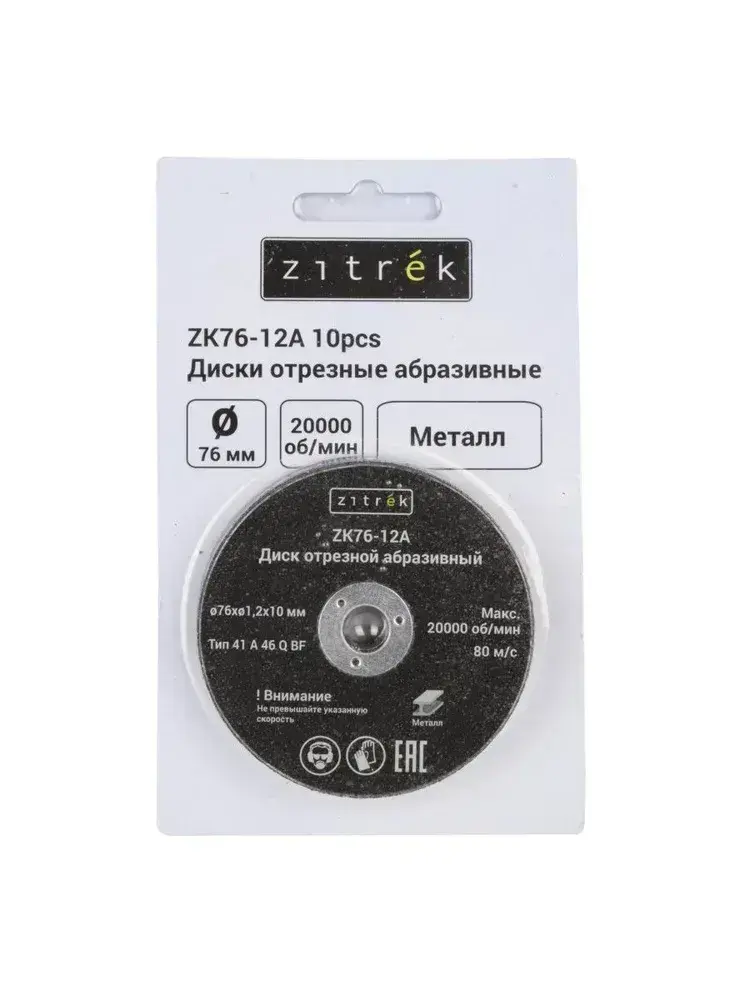 Диски отрезные абразивные Zitrek ZK76-12A, 76x1,2x10мм, 1,2мм, 10шт