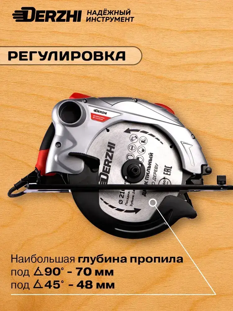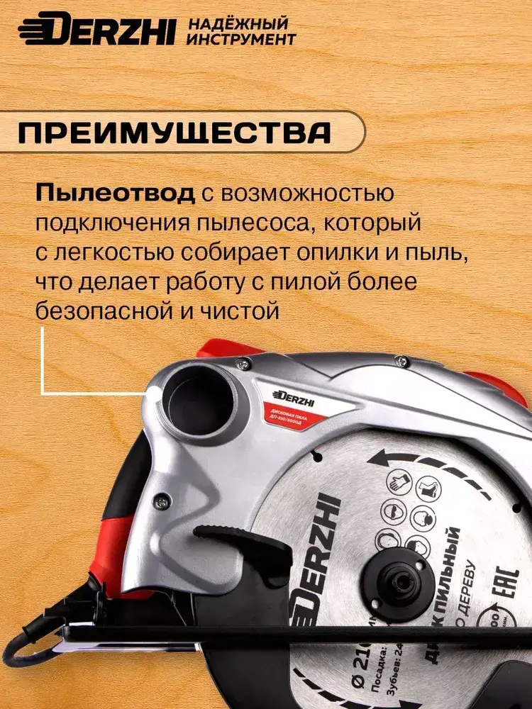 Дисковая пила циркулярная DERZHI 2000Вт, 4000 оборотов/мин