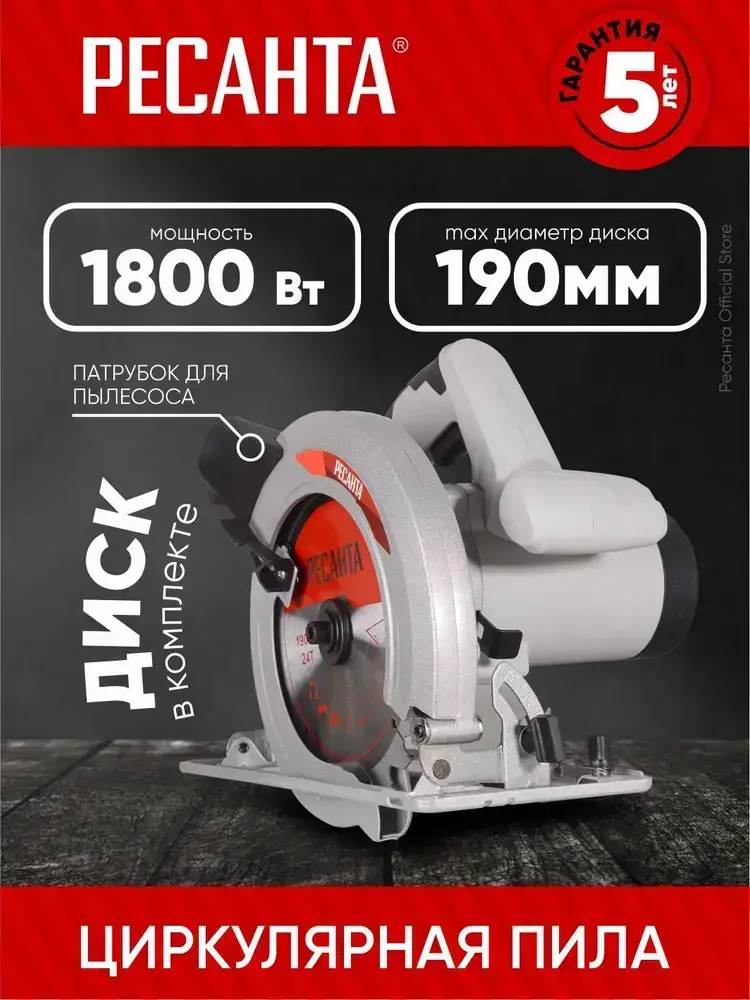 Дисковая пила циркулярная ДП-1,8-19А Ресанта - 1800Вт, диск 190мм, пропил до 68мм, ГАРАНТИЯ 5 ЛЕТ