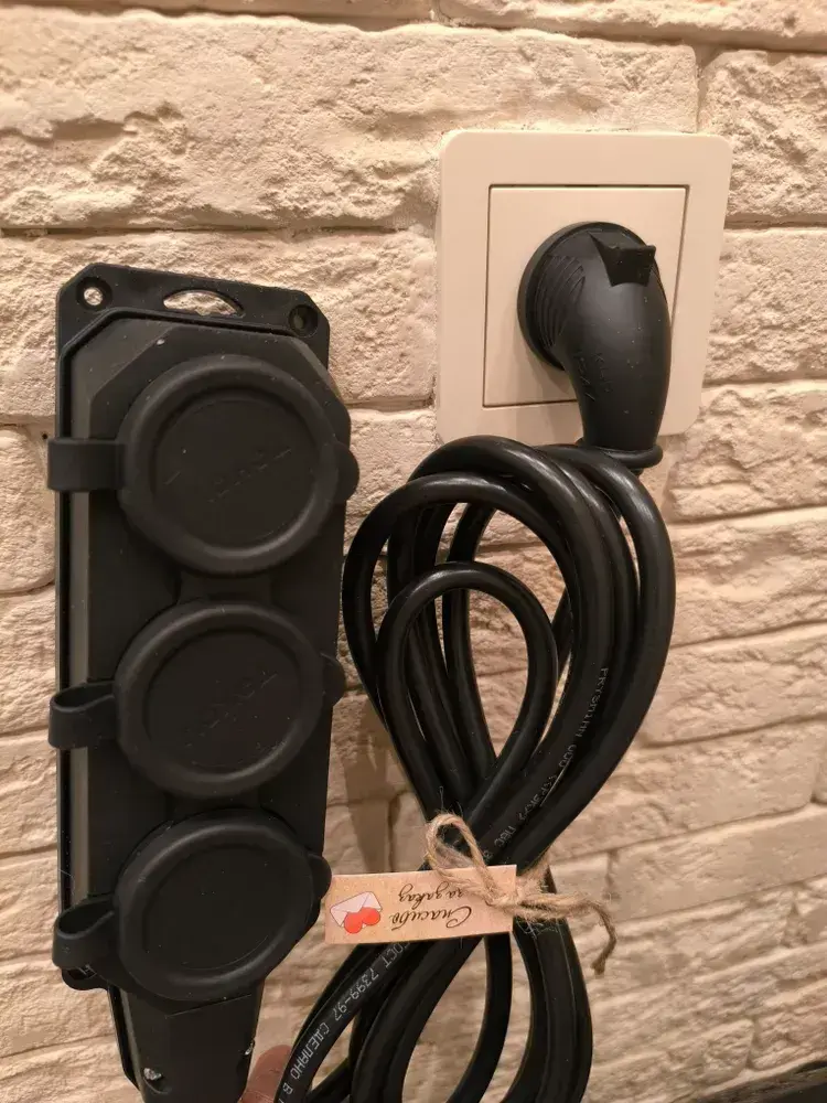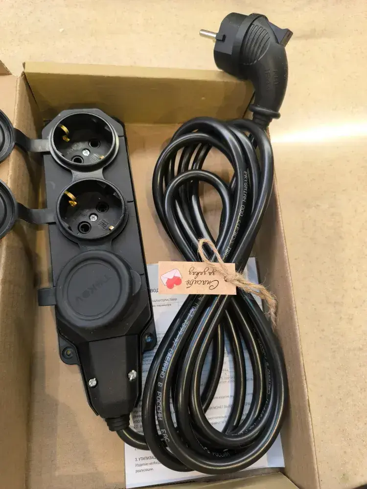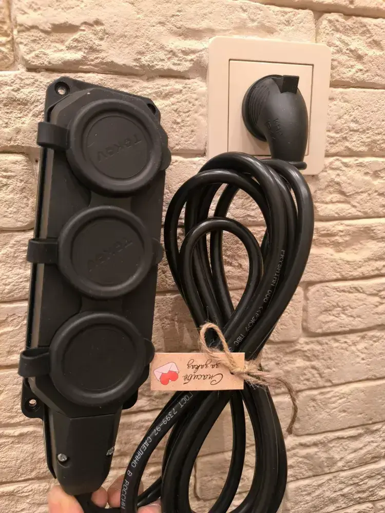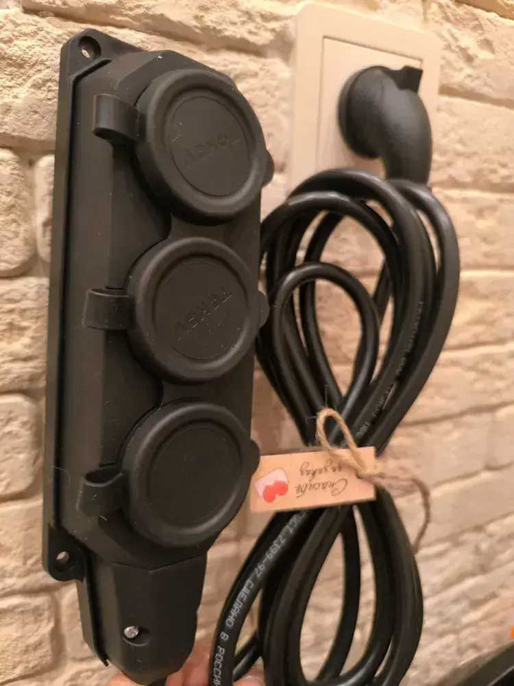 длинитель IP 44 влагозащищенный .с Угловой вилкой каучук 3 розетки 3 метра с заземлением 3на1,5 ПВС Гост