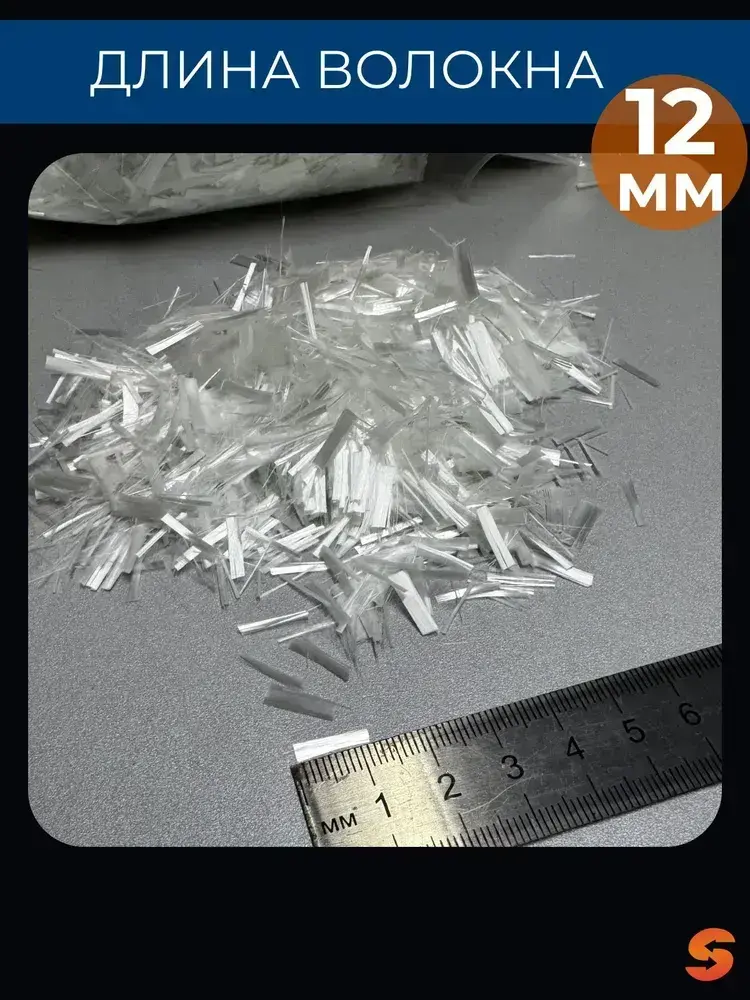 Добавка в раствор, фибра для бетона 12 мм, 3 кг армирующая, фиброволокно для стяжки, упрочнитель бетона, стеклофибра