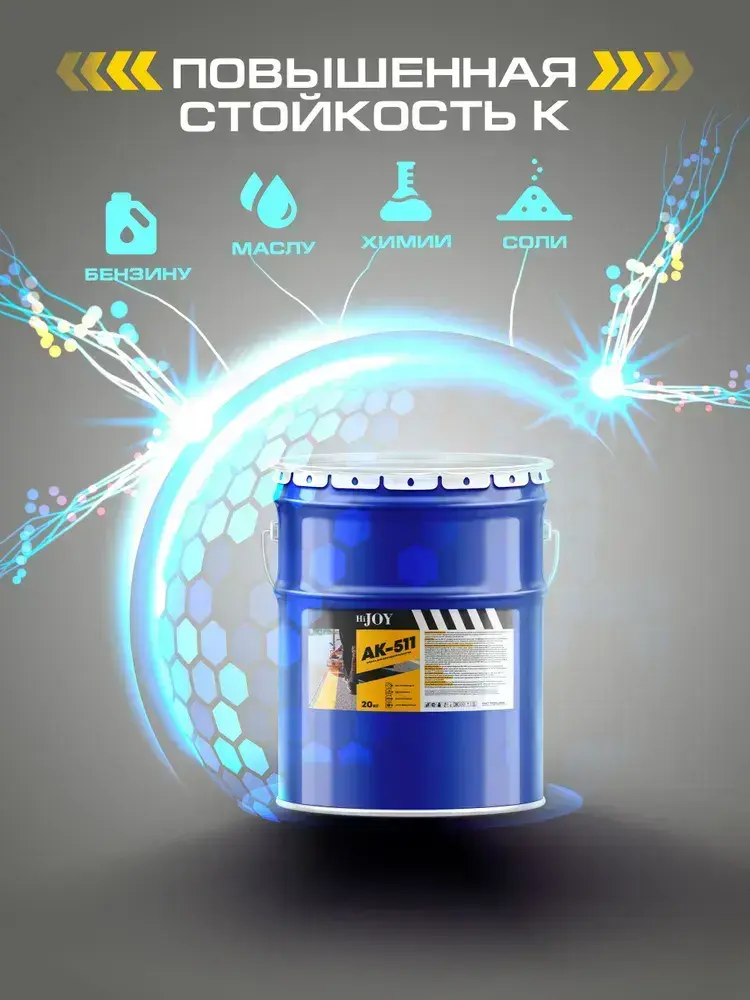 Дорожная краска АК-511 HiJOY , для ДОРОЖНОЙ разметки, краска для пола по бетону, износостойкая, быстросохнущая Серая, 7 кг
