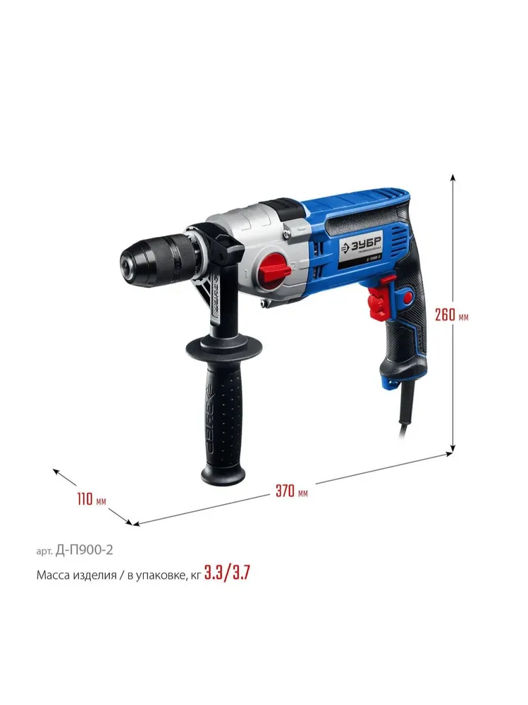 Дрель, 2-скоростная ЗУБР 900 Вт, 13 мм, мет. корпус, Профессионал(11779)