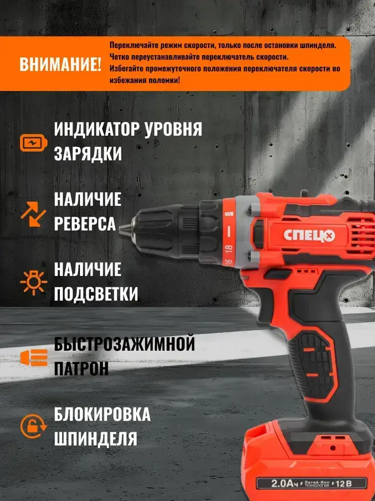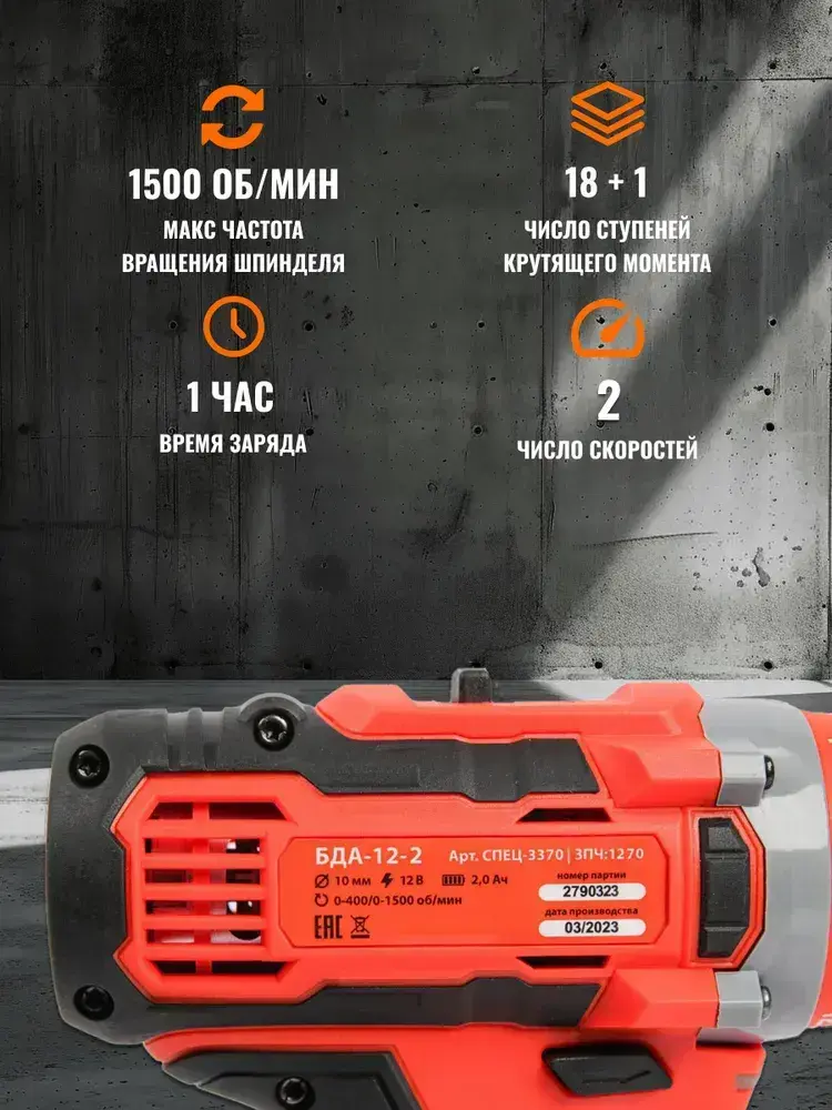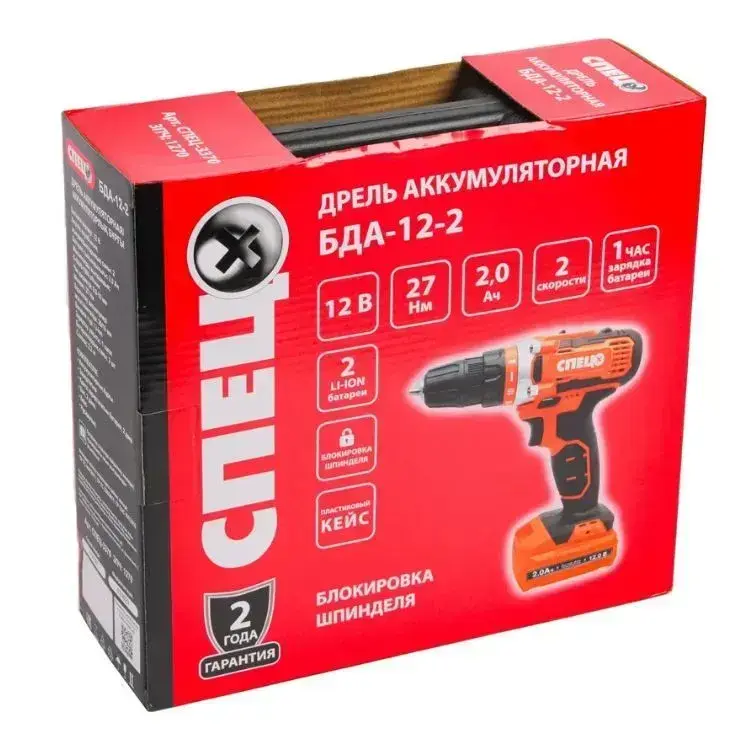 Дрель аккумуляторная СПЕЦ БДА-12-2 (27Нм, 2АКБ х 2 Ач, кейс)